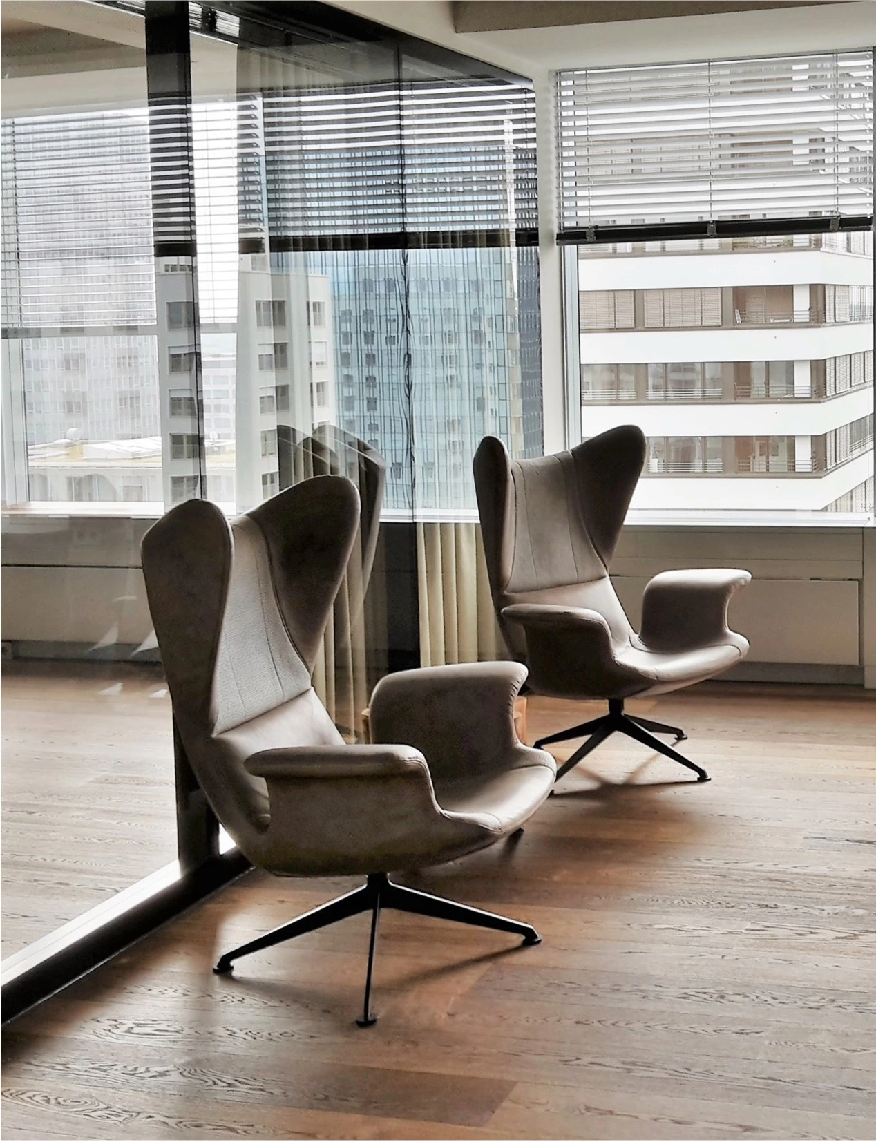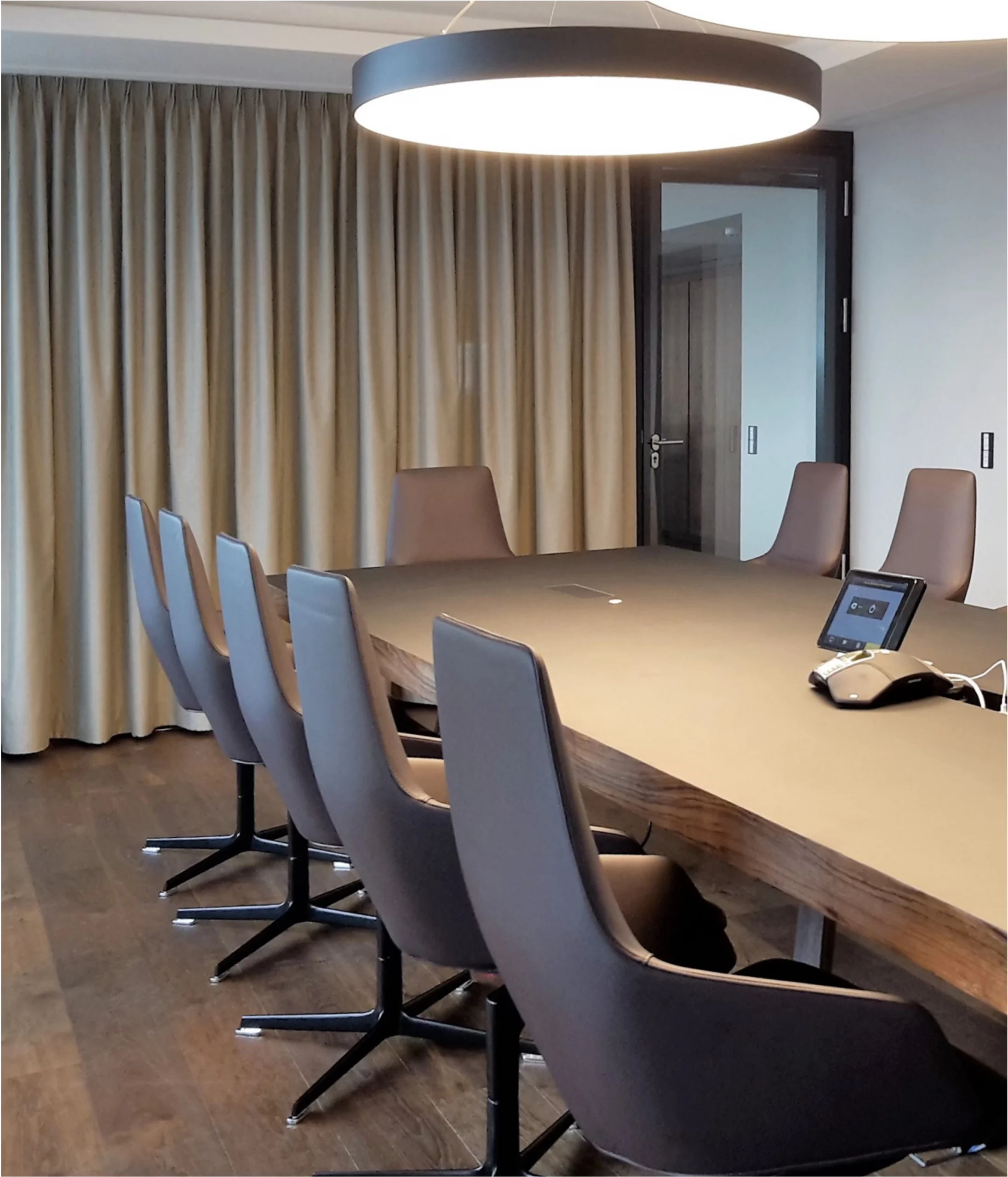 Sie wurde mit Analogien zum „Kerngeschäft Auto“ entwickelt: geölte Oberflächen, gebürstetes Holz, mit Stoff bezogene Paneele, gestepptes Leder.