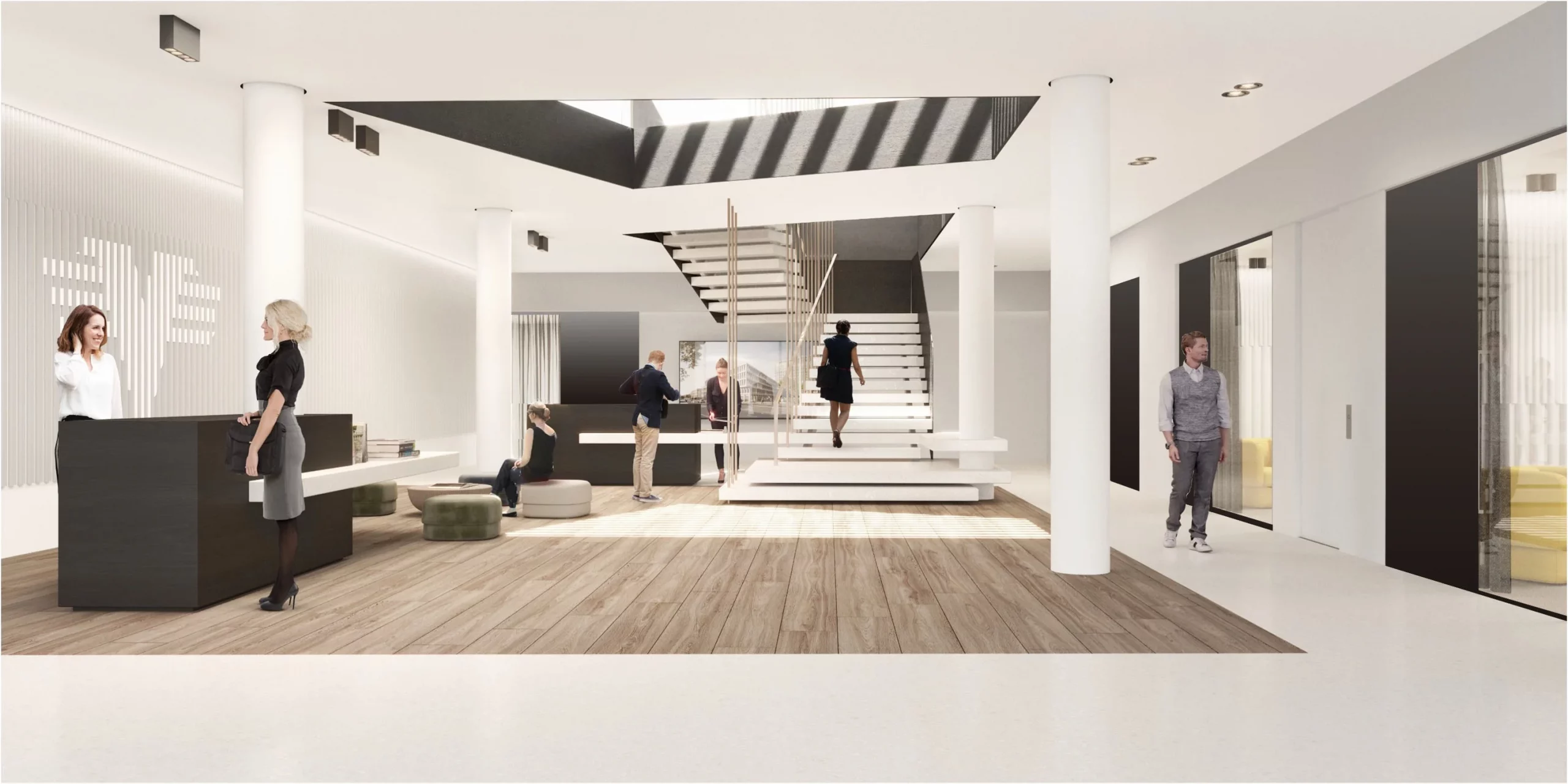 Ein offenes Entree im Erdgeschoss, inspirierende Events in der Customer Lounge, moderne Arbeitsplätze in den oberen Etagen und eine Vorstandsetage mit viel Raum für Visionen: all das spiegelt die Haltung der Volksbank wider.