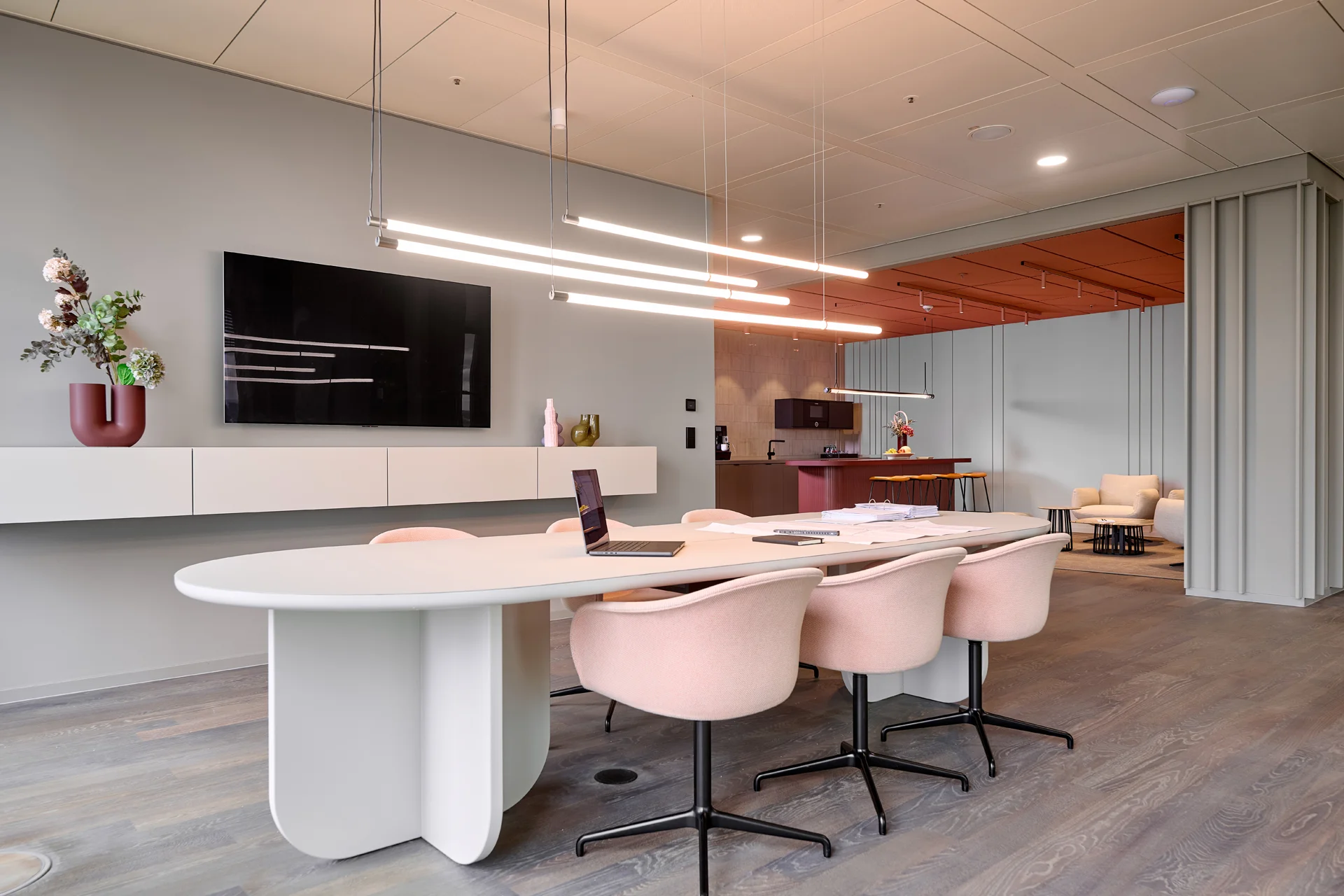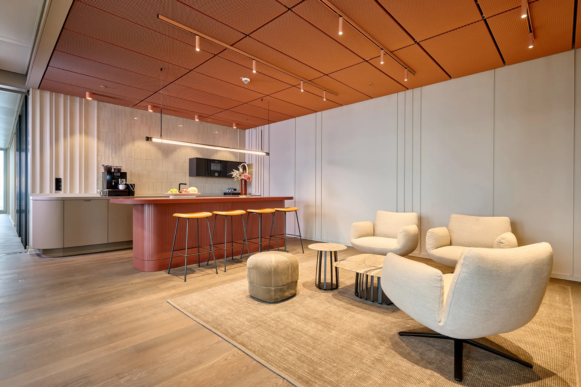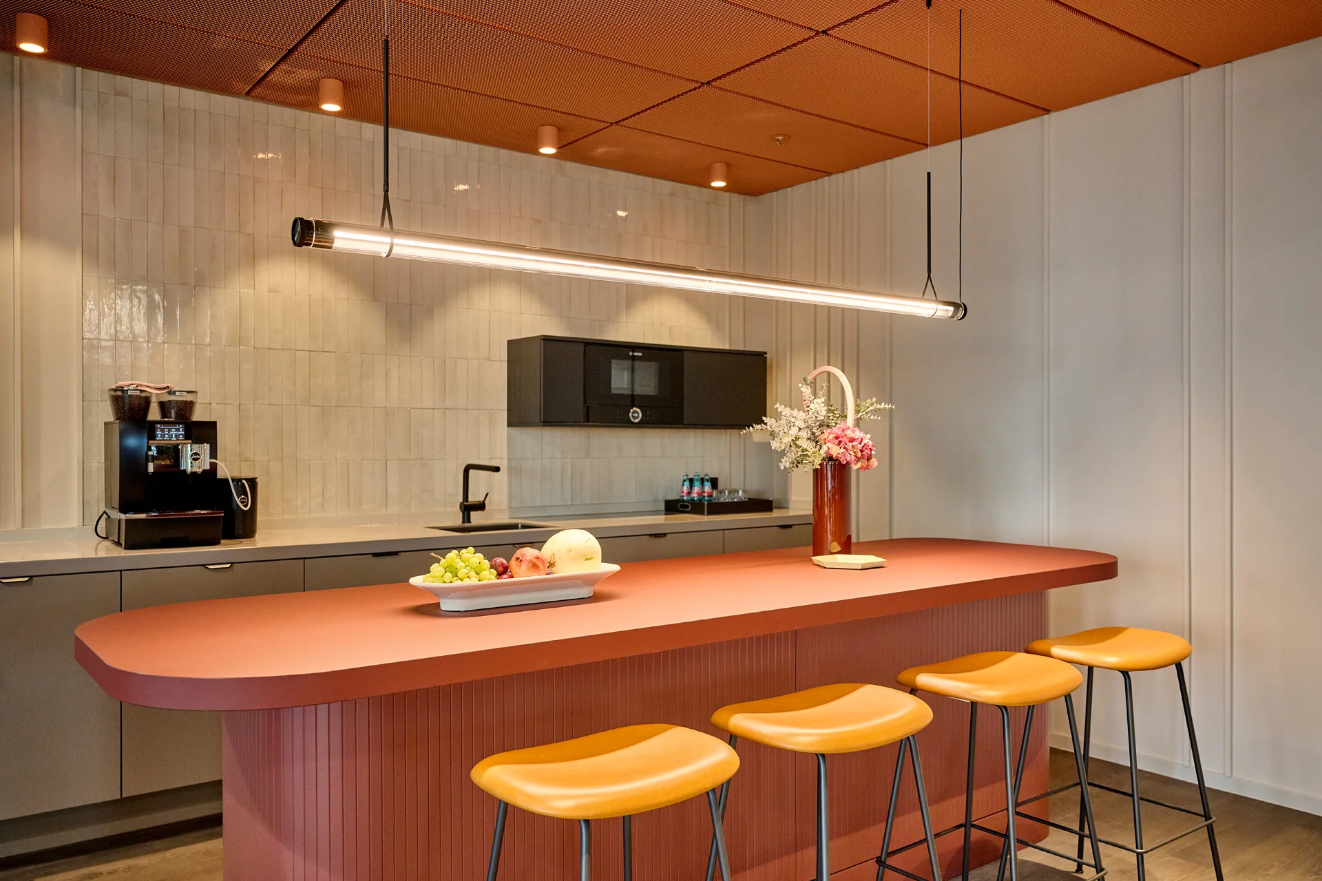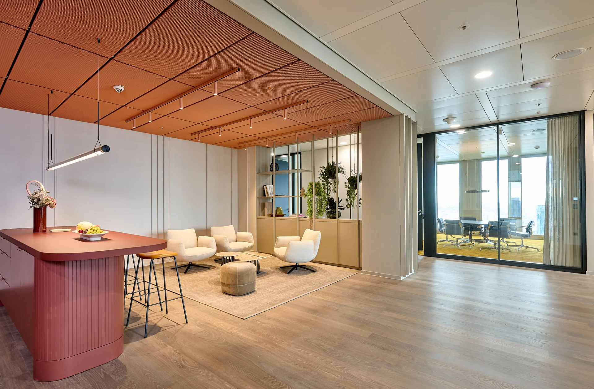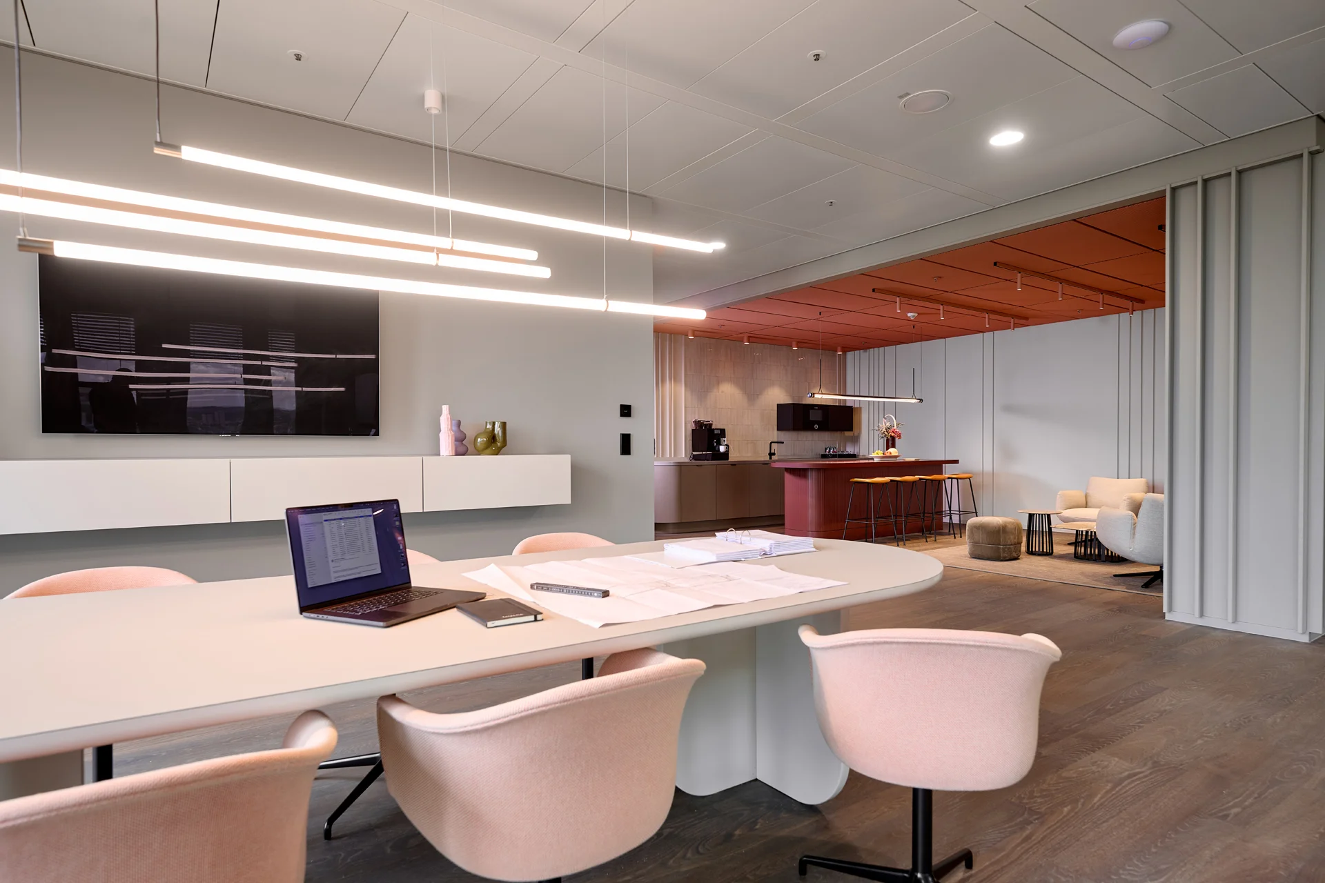 Das Herz bildet die neue Lounge, die mitten in den Arbeits- und Meetingräumen liegt. Hier werden Diskussionen geführt, neue Konzepte entwickelt und Strategien erarbeitet. Ein großartiges Beispiel dafür, was Architektur leisten kann: sie verbindet, inspiriert und wirkt als Katalysator für Innovationen und Fokussierung.