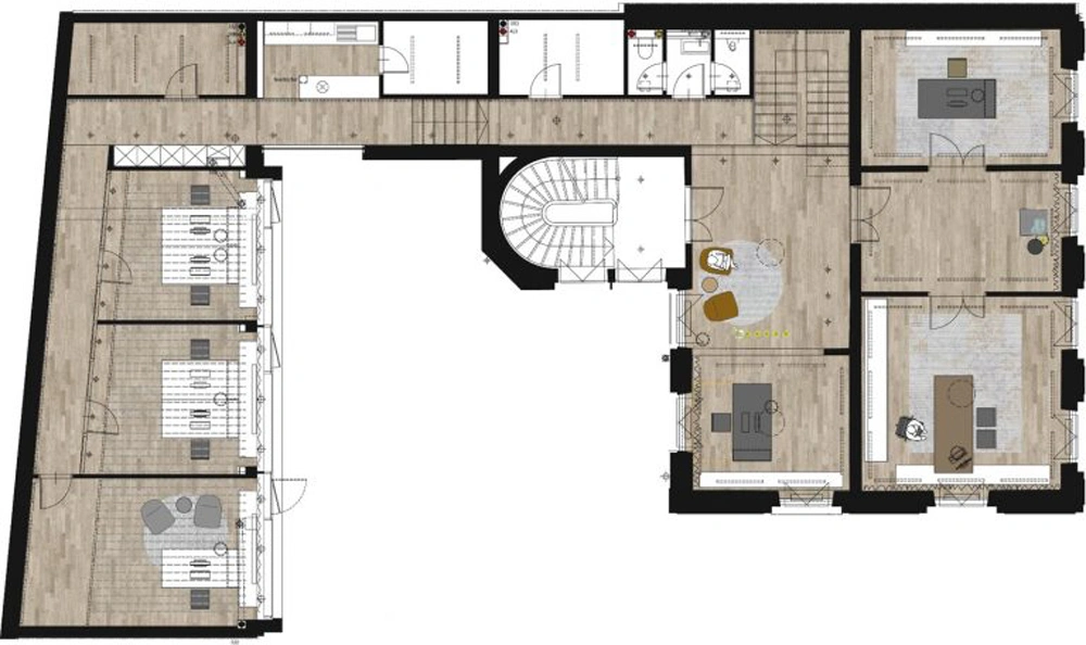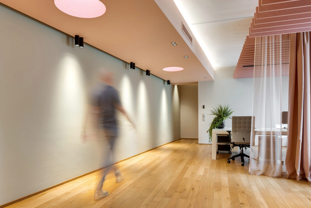 Wir haben New Work in eine neue Farbwelt getaucht, Formen und Materialien folgen den Emotionen der verschiedenen Funktionen und Räumen.