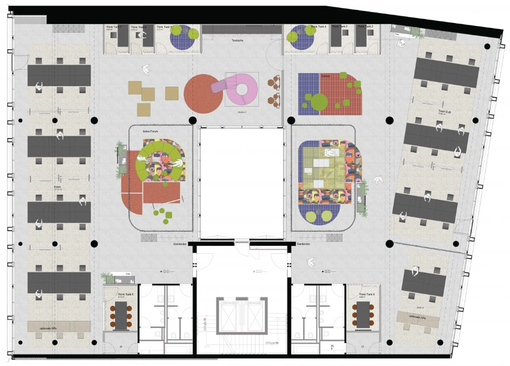 Der Raum legt nichts fest, alles ist möglich. Er ist vielfältig, inspirierend und gibt den vielen Persönlichkeiten des Unternehmens ein Zuhause.